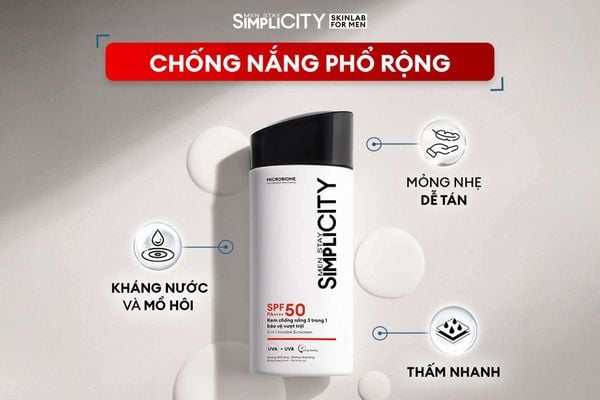 Để hình thành thói quen bảo vệ da mỗi sáng, việc tìm kiếm một sản phẩm phù hợp với cơ địa phái mạnh là điều kiện tiên quyết. Men Stay Simplicity mang đến tuýp kem chống nắng cho nam SPF 50 PA++++ được thiết kế chuyên biệt để đánh bay mọi e ngại về sự nhờn rít. Sản phẩm ứng dụng công nghệ bọc màng lọc hiện đại Encapsulated Sunscreen, giúp bảo vệ nền da toàn diện trước cả tia UVA và UVB nhưng lại vô cùng êm dịu, hạn chế tối đa rủi ro kích ứng ngay cả với những làn da đang bị mụn nhạy cảm.