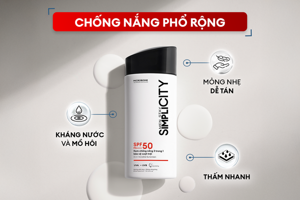 Trị mụn không chỉ phụ thuộc vào sữa rửa mặt, BHA hay Retinol. Một yếu tố quan trọng nhưng thường bị nam giới bỏ qua chính là kem chống nắng cho nam. Khi da bị mụn tiếp xúc với tia UV, tình trạng thâm, viêm và kích ứng sẽ nặng hơn, khiến quá trình điều trị kéo dài. Da nam lại nhiều dầu, dễ bít tắc nên càng cần được bảo vệ mỗi ngày. Kết hợp đúng giữa làm sạch – treatment – chống nắng là chìa khóa giúp da phục hồi nhanh và giảm mụn hiệu quả. Hãy cùng Men Stay Simplicity khám phá bí quyết trị mụn và giảm thâm rõ rệt cùng kem chống nắng cho nam giới.