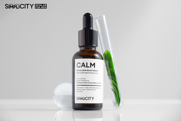 Serum Calm là một trong các loại serum hiếm hoi dành riêng cho nam giới với cơ chế tác động ba tầng: giảm mụn hiện có, ngừa mụn quay lại và kiểm soát dầu nhờn. Nhờ kết hợp BHA, Salix Alba Bark, Shikimic Acid và Terpineol-4, sản phẩm trở thành “combo” hoàn chỉnh của một serum trị mụn cho da dầu.