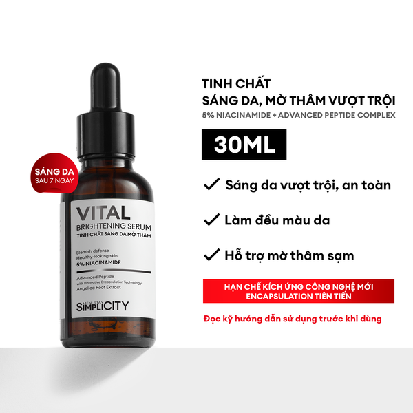 Nếu anh em muốn bắt đầu với một serum Niacinamide chất lượng, Serum Vital của Men Stay Simplicity là lựa chọn tối ưu. Vital là serum sáng da – mờ thâm ứng dụng công nghệ encapsulation hiện đại, giúp hoạt chất ổn định, thấm sâu và không bị oxy hóa trong quá trình sử dụng.