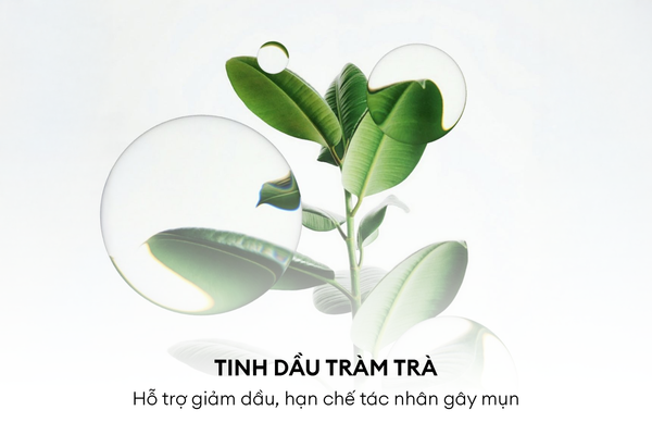 Không chỉ làm sạch hiệu quả, tràm trà còn giúp ngăn vi khuẩn gây mụn quay trở lại, đồng thời cân bằng tuyến nhờn và giảm tình trạng bóng dầu. Với những ai có làn da nhạy cảm, đây là lựa chọn an toàn và dịu nhẹ hơn so với các hoạt chất hóa học mạnh.