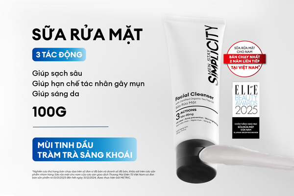 Nếu anh em đang tìm một sữa rửa mặt trị mụn cho nam da dầu vừa làm sạch sâu, vừa an toàn cho da nhạy cảm, thì Sữa rửa mặt 3 tác động Men Stay Simplicity là lựa chọn rất đáng để cân nhắc. Sản phẩm được nghiên cứu dựa trên đặc điểm da của nam giới Việt Nam – vốn dày, nhiều dầu nhưng lại dễ mất nước – vì vậy công thức tập trung vào làm sạch, kiểm soát nhờn và phục hồi, tạo nên hiệu quả toàn diện chỉ với một bước rửa mặt.