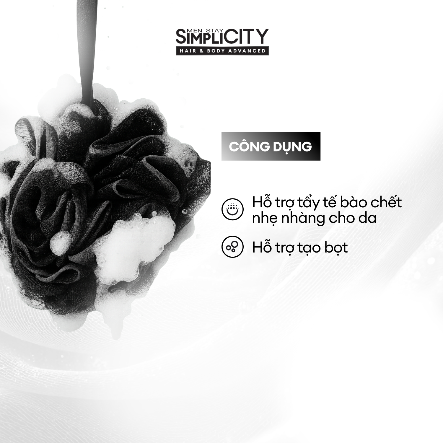 Sử dụng bông tắm Men Stay Simplicity hàng ngày giúp anh em loại bỏ nhẹ nhàng lớp da chết, làm sạch sâu da.