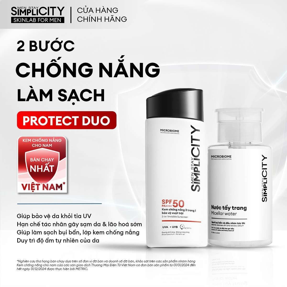 Combo chống nắng & làm sạch Protect Duo giúp bảo vệ và chăm sóc da toàn diện mỗi ngày.