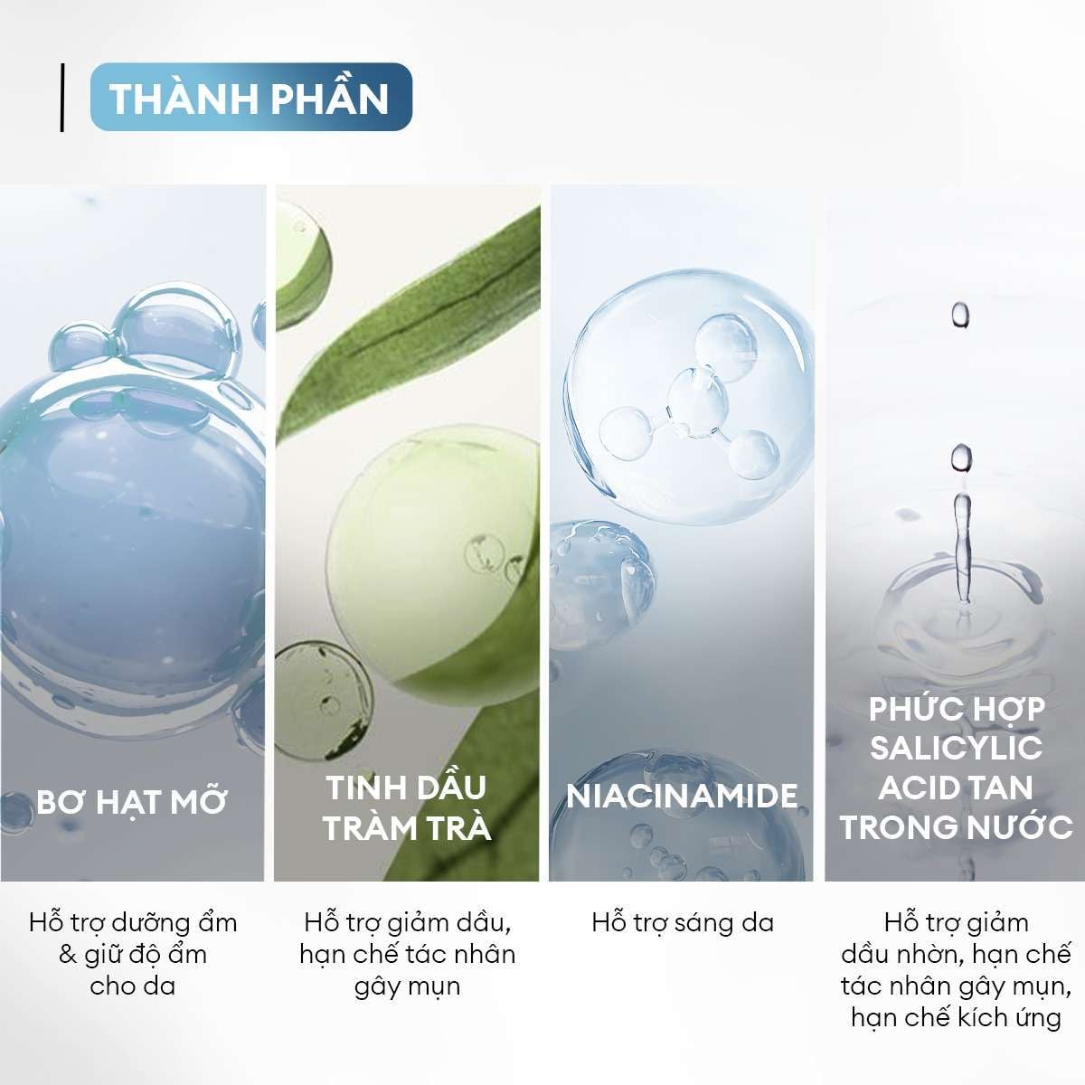 Phức hợp Salicylic & Acid tan trong nước Giúp giảm dầu nhờn, ngừa mụn, hạn chế kích ứng |