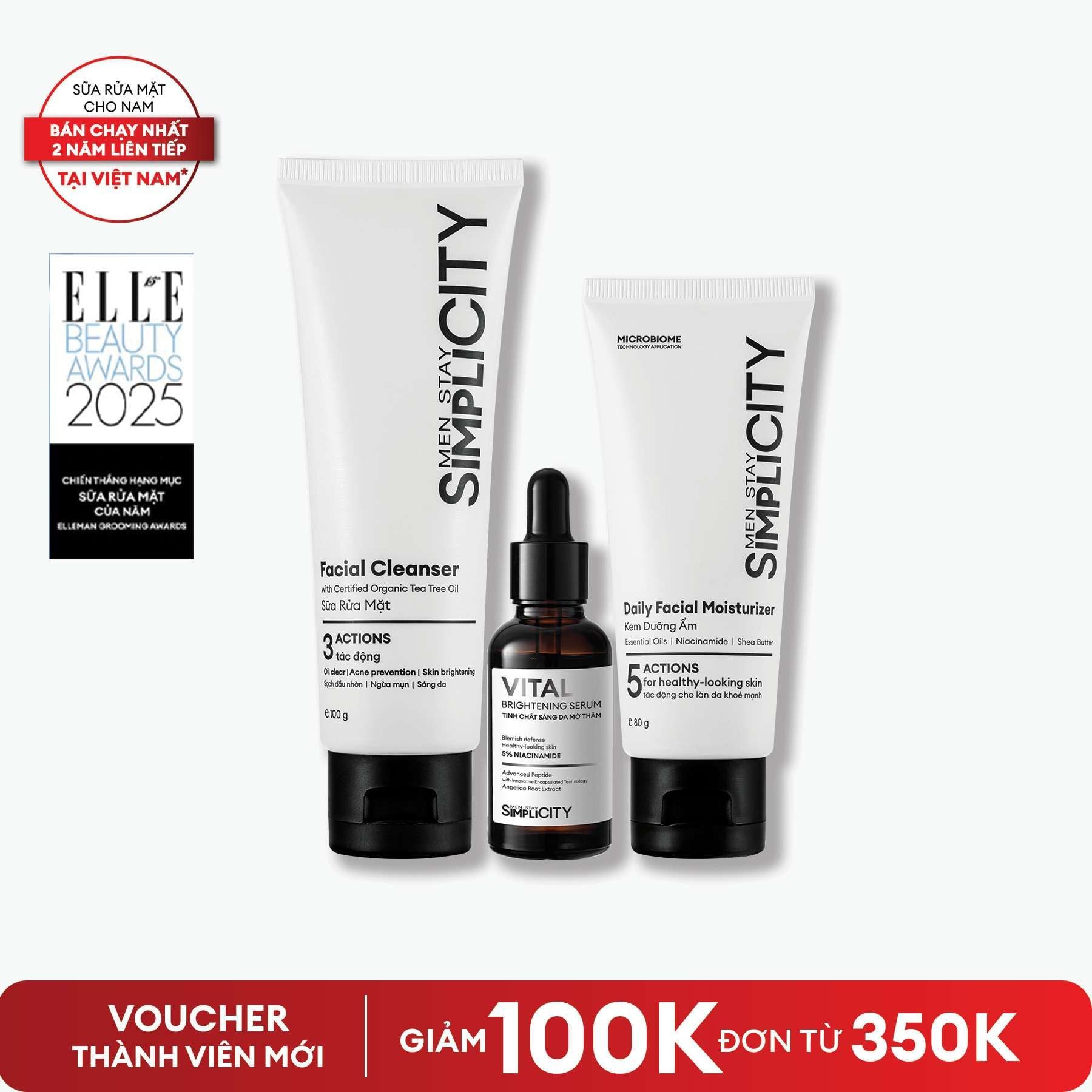 Bộ 3 bước chăm da Brightening Trio phiên bản PRO 2024 gồm sữa rửa mặt, tinh chất sáng da và kem dưỡng ẩm – ứng dụng hoạt chất đột phá giúp làm sạch sâu, dưỡng sáng an toàn, phục hồi và bảo vệ da nam giới mỗi ngày.