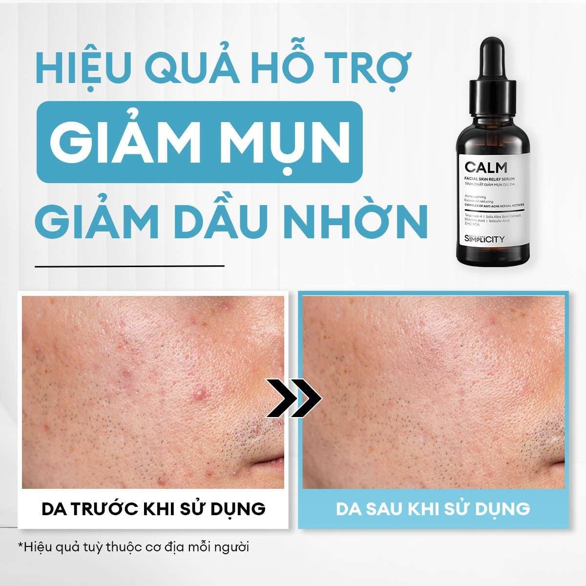 | Phù hợp với | Nhiều loại da; Da dầu mụn; Da mụn ẩn; Da có mụn sưng viêm tình trạng nhẹ và vừa |