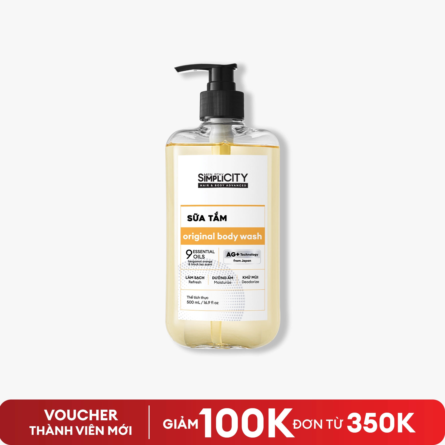 Sữa tắm sạch khuẩn, khử mùi công nghệ Ion Bạc hương tinh dầu thiên nhiên